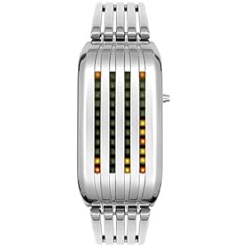 If you're looking for an LED watch that is like no other, then grab the science-fiction inspired Barcode SS from the jaw-dropping designer, Tokyo Flash. The colors on this watch are big and bright, and super easy to see. The light-up function starts at 6 PM and goes up to 1 AM every minute; it is also activated when the time button is pressed between 1 AM to 6 PM. It might sound like a tricky way to tell time, but once you get the hang of it, you'll be the envy of all your friends. The Barcode SS measures 2.8 centimeters across, 5.7 centimeters long, and 1.3 centimeters thick, and features a band made of solid stainless steel straps (maximum wrist size 21.5 cm) with a push-button, fold-over clasp.